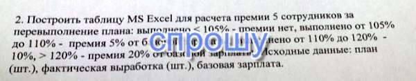 Задача по информатике в excel 2