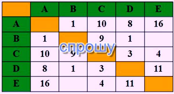 Ребят,помогите)В таблице представлено расстояние между населенными пунктами. Найди кратчайшее расстояние между пунктами A и E