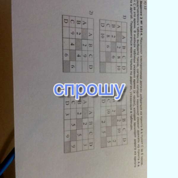 4) В 4 таблице добраться из пункта А в пункт C можно 2 путями: