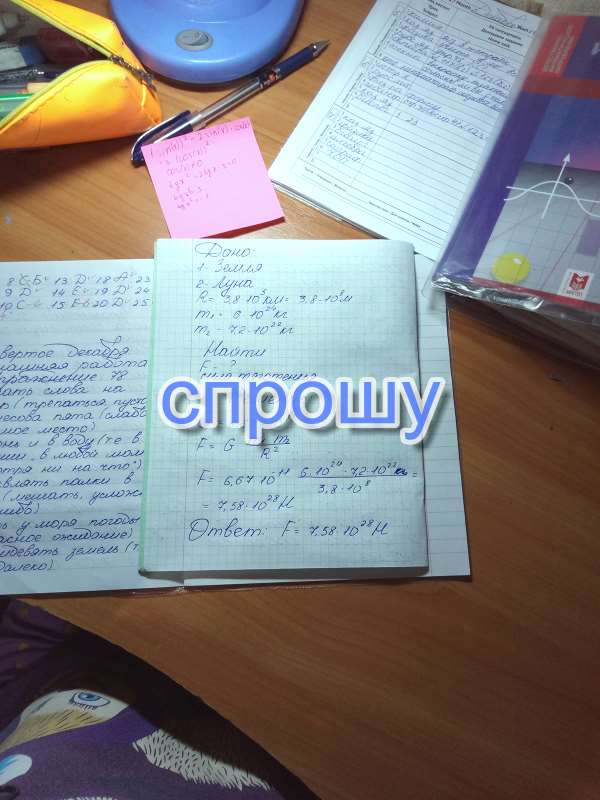 F=6,67*10^(-11)*6*10^24*7*10^22 / ( 3,84*10^8)^2=1,9*10^20H.