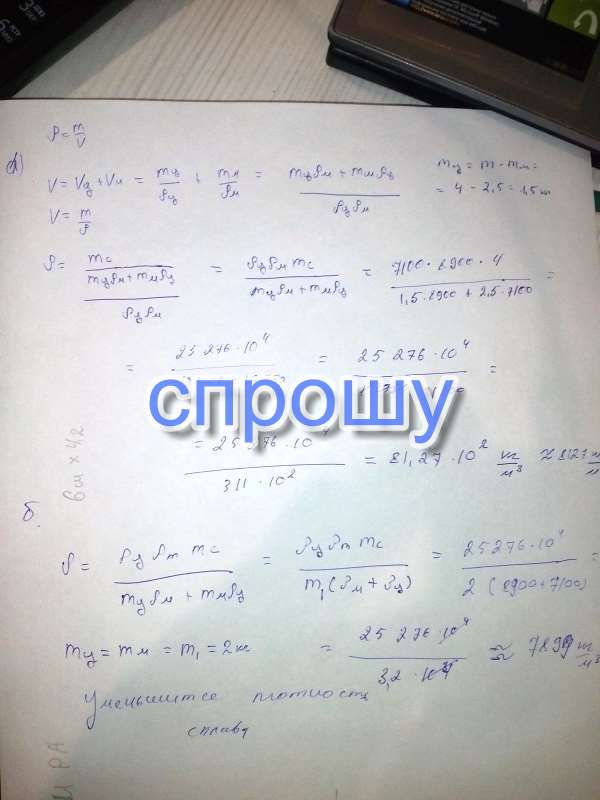 а) плотность сплава если масса меди в сплаве равна m2 = 2.5кг