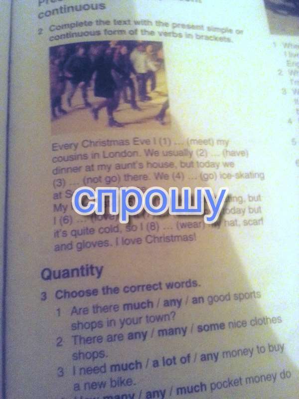 1)meet 2)have 3)dont go 4)are going 5)dont 6)love 7)isnt snowing 8)am wearing