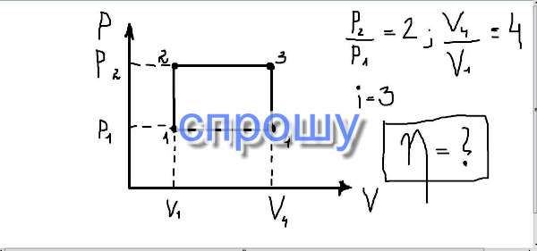 Qз=Q12+Q23=КПД=3*P1*V1/16.5*P1*V1=0.1818=18,2