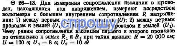 Для измерения сопротивления изоляции в проводах, находящихся под напряжением, измеряют посредством вольтметра с большим внутренним сопротивлением R напряжения: