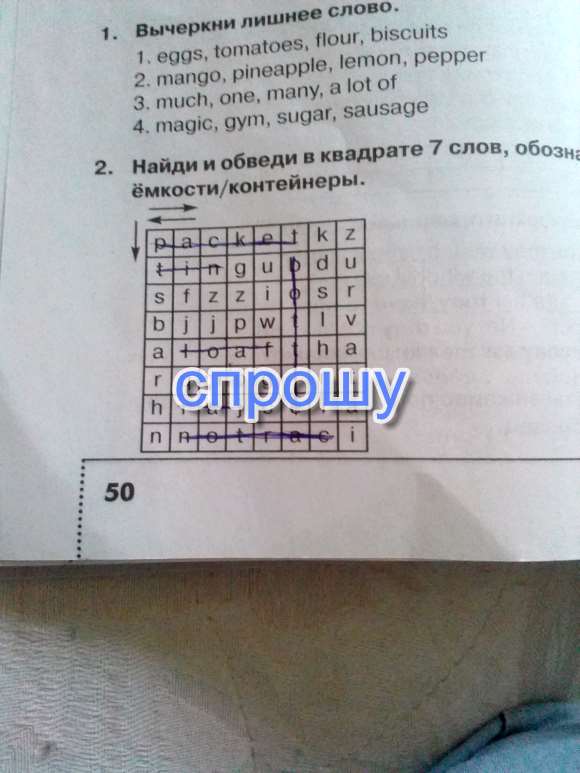 Найди и обведи в квадрате 7 слов обозночающих ёмкости или контейнеры