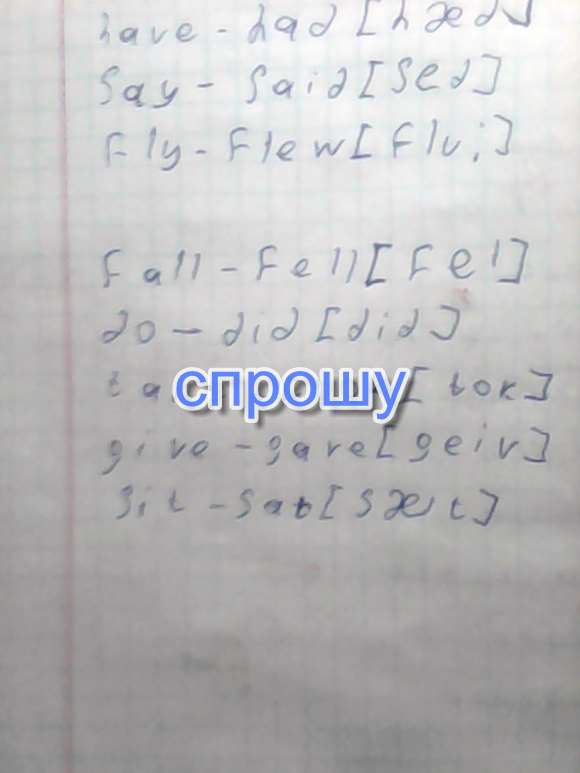 Fell- упал, do- ты, did- сделал, take- взять, took- взял, give- дать, gave- дал, sit- сидеть, sat- суббота.