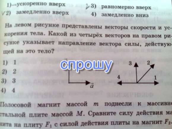 По второму закону Ньютона сила сонаправлена ускорению, так что ответ 1