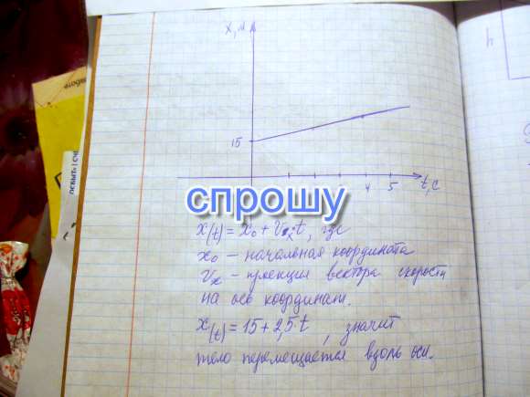 Хотя быформулу!!!!! Как выглядит график координаты для равномерного и прямолинейного движения если начальная координата равна 15 метров а скорость движения 2,5 м\с