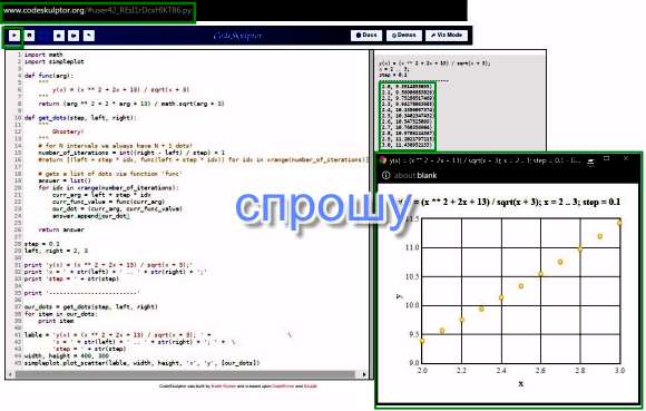 На отрезке [2,3] с шагом 0,1 построить точечную диаграмму: Y = (x^2+2x+13)/√(x+3)