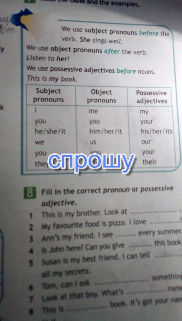 1.Я, ты, он, она, оно, мы, вы, они; 2. Мне, тебе, ему, ей, этому/этой, наше, вам, им; 3. Мое,твое, его, ее, этого, наше, ваше, их.