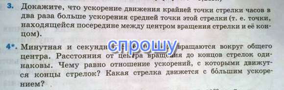2) Если радиусы одинаковы, то ускорения относятся как квадраты угловых скоростей. Угловая скорость равна два пи делить на период обращения. У секундной стрелки это 60 секунд, а у минутной 3600. Периоды относятся как 1 к 60, значит угловые скорости как 60 к 1, а ускорения как 3600 к 1, причем больше, разумеется, для секундной стрелки.