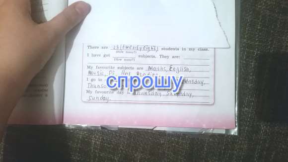 В первый пропуск ставишь кол-во предметов в твоем классе(Например:ten). Дальше ты их перечисляешь(Например:math, p.e.)