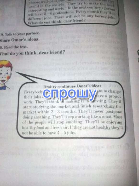 Дмитрий eontinues идеи Каждый Омар будет приятно работать Они хотят изменить свою работу очень неделю. Каждый будет иметь проект. Работа. Они будут думать, что делает его интересным. Они начинают изучение рынка и закончить исследование рынка в течение 2-х 3-х месяцев. Они никогда не будут делать что-либо отложить. Они будут продолжать работать, как робот. Большинство людей будет бросить курить. Они будут наслаждаться здоровой пищей и свежим воздухом. LL Lhey являются UOT здоровыми они не будут в состоянии иметь 5 рабочих мест.