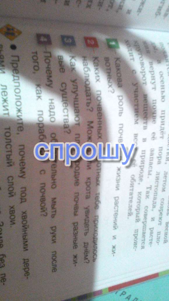 Помогите ответить на вопросы: Какова роль почвы в жизни растений и животных? 2 какие почвенных животных тебе приходилось пронаблюдать? и остальные вопросы на фотке:3 помогите пожалуйста!