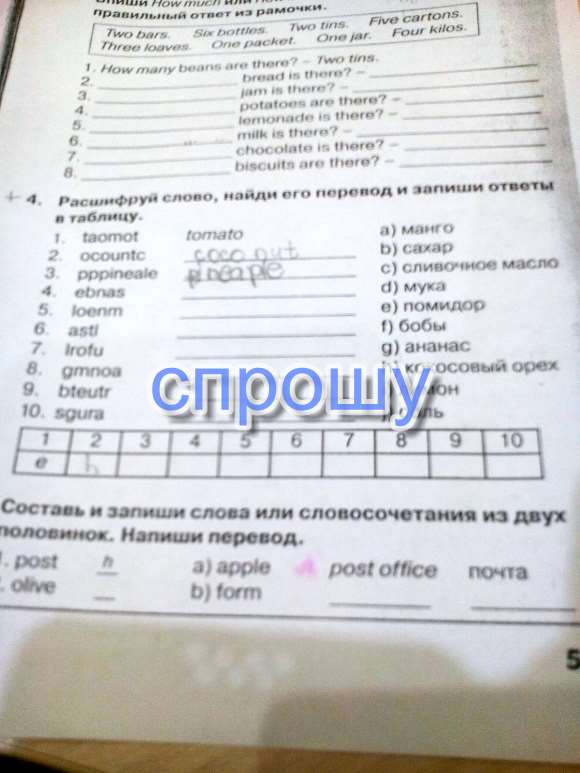 Расшифруй слова найди его перевод и запиши ответы в таблицу