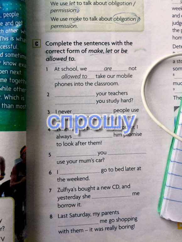 Английский язык, помогите.Надо поставить make/let/be allowed to