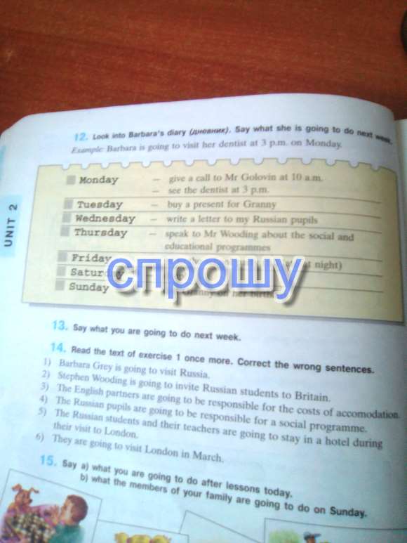 Look into Barbara,s diaty (дневник). Say what she is going to do next week.
