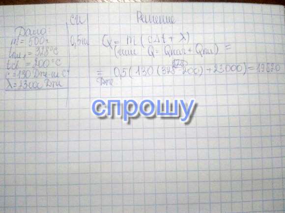 Какое количество теплоты потребуется для того, чтобы расплавить кусок свинца массой 500г, находящийся при температуре 200С?