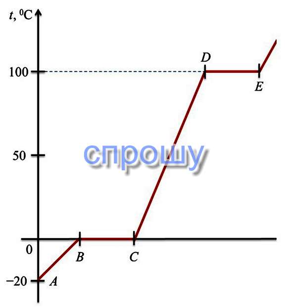 AB - процесс нагревания льда. Находится по формуле Q=cm(tк-tн) Q=2100 Дж/(кг * ˚С)*0,5кг(0-20)=21кДж