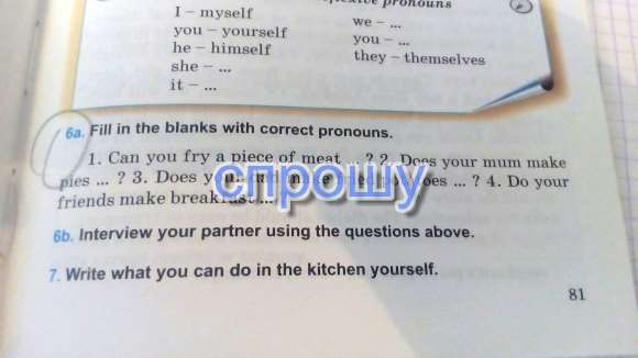 Помогите с английским языком!На картинке решите номер 6a!Там наверно надо вставить местоимения!