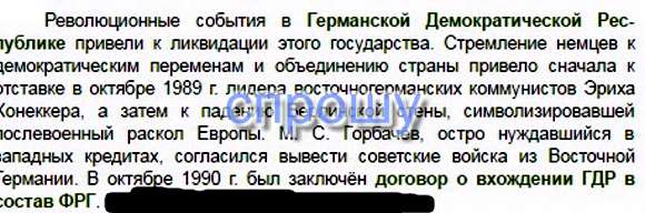 Революционные события в Германской Демократической Республике привели к ликвидации этого государства. Стремление немцев к демократическим переменам и объединению страны привело сначала к отставке в октябре 1989 г. лидера восточногерманских коммунистов Эриха Хонеккера, а затем к падению Берлинской стены, символизировавшей послевоенный раскол Европы. М. С. Горбачёв, остро нуждавшийся в западных кредитах, согласился вывести советские войска из Восточной Германии. В октябре 1990 г. был заключён договор о вхождении ГДР в состав ФРГ. Материал с сайта http://worldofschool.ru