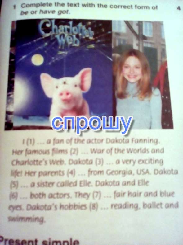 I`m a fan of the actor Dakota Fanning. Her famous films are War of the Worlds and Charlotte`s web. Dakota has got a very exciting life! Her parents are from Georgia, USA. Dakota has a sister called Elle. Dakota and Elle are both actors. They have fair hair and blue eyes. Dakota`s hobbies are reading, ballet and swimming.