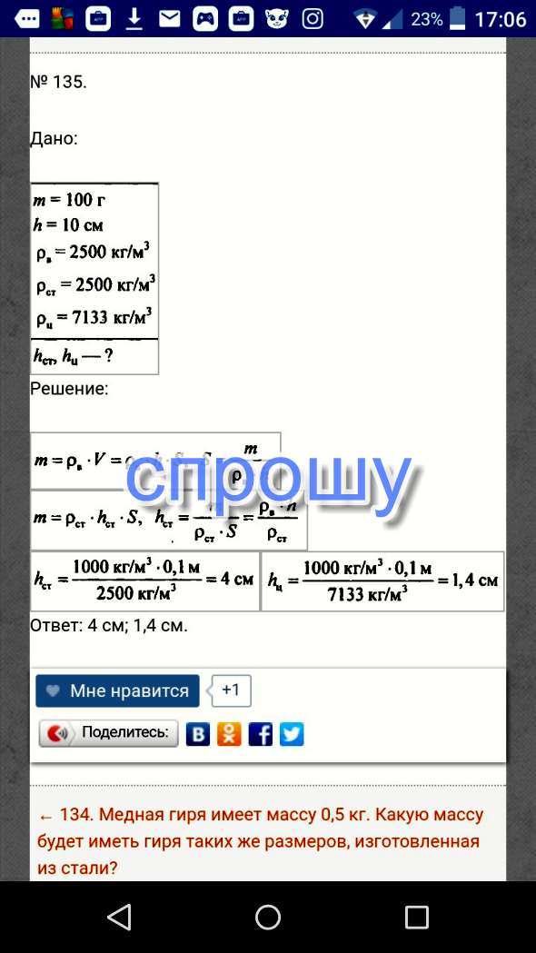 В мензурку налито 100 г воды. Высота столба воды 10 см. Какой высоты будут такой же массы и диаметра столбики из стекла и цинка? Помогите пожалуйста.