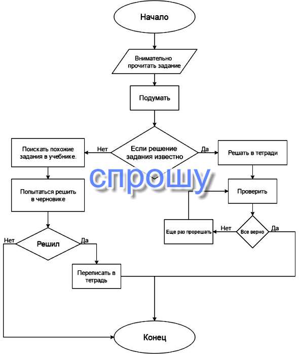 Вот блок-схема алгоритма выполнения домашнего задания по математике.