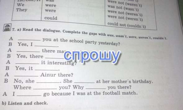 А were B was A were B were A Was B was A Was B wasn’t- was - were - weren’t A couldn’t