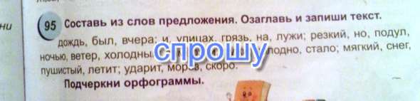 Вчера был сильный дождь и на улицах образовались грязи и лужи. Но сегодня ночью подул резкий холодный ветер.Стало очень холодно: большие лужи замерзли, покрываясь тонкой корочкой льда. Скоро ударит мороз и, кажется, полетит мягкий пушистый снег.