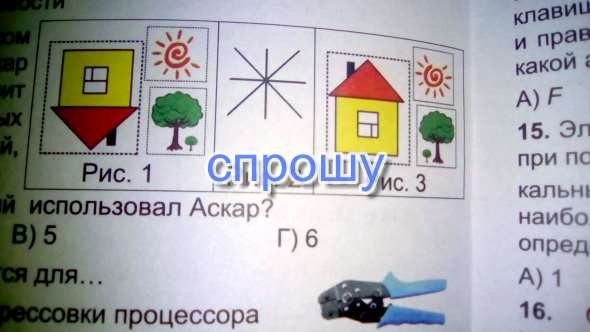 Работая в графическом редакторе с рисунком 1, Аскар получил рисунок 3. Рисунок состоит из трёх блоков, каждый из которых можно отражать относительно осей, изображенных на рисунке 2. Какое минимальное количество отражений использовал Аскар?