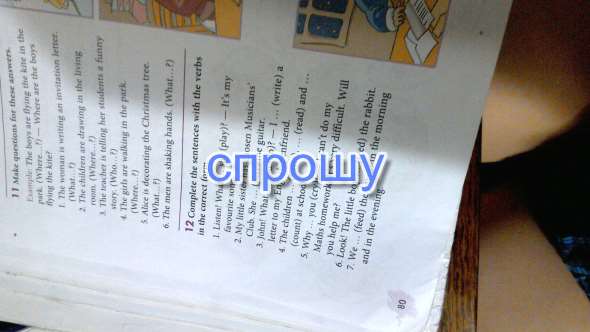 1. what is she playing 2. plays 3. what are you doing - I am writing... 4. write, read and count 5. why are you crying 6. is feeding 7. feed