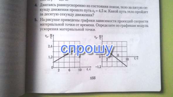 Пользуясь первым графиком, найдём ах, ах= (V-Vo)/Δt, ax=(2,4-0,6)/10c =0,18 м/с²