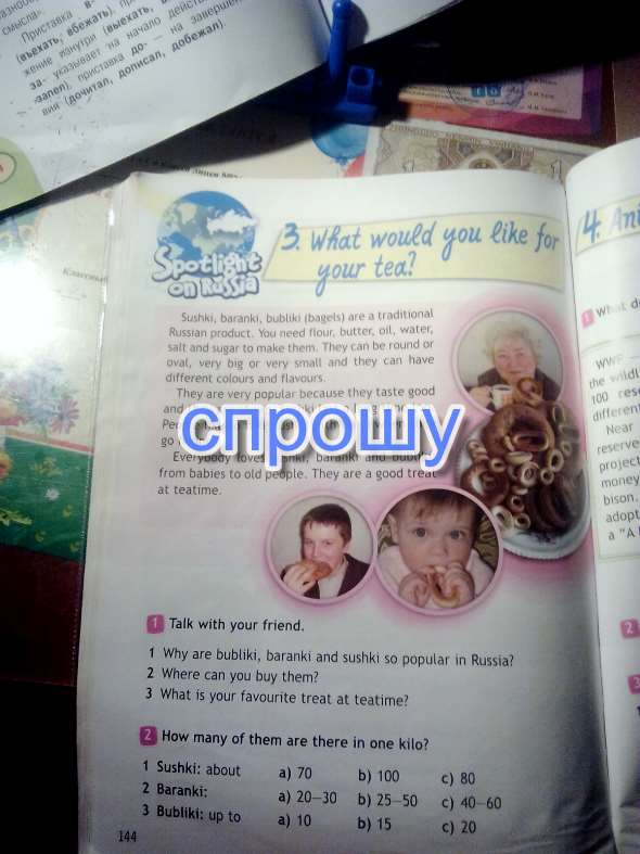 Сцшки,баранки,бублики это традиционная русская еда. Вам нужна мука,масло сливояное, масло подсолнечное, вода, соль и сахар, чтобы сделать их. Они могут быть круглой или овальной формы, очень большие или очень маленькие, и они могут иметь разные цвета и ароматы. Они очень популярны, потому что они имеют приятный вкус и они дешевы. Сушки имеют большой срок хранения. Люди любят брать сушки с ними, когда они идут в поход. Все любят сушки, Баранки и Бублики: от младенцев до стариков. Они являются хорошим удовольствие во время чаепития.
