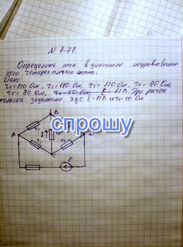 Определить ток в диагонали неуравновешенного четырехплечего моста, если...