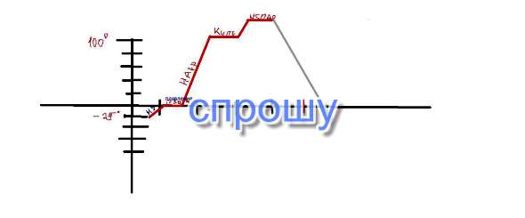 Постройте график зависимости температуры тела от времени для льда, начальная температура которого -25С. лед необходимо нагреть, раплавить а полученную воду довести до кипения и испарить