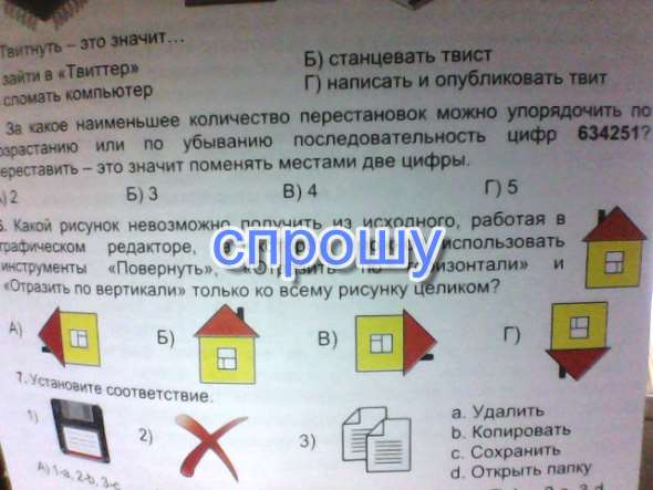 Какой рисунок невозможно получить из исходного, работая в графическом редакторе, в котором можно использовать инструменты "повернуть", "отразить по горизонтали" и "отразить по вертикали" только ко всему рисунку целиком?