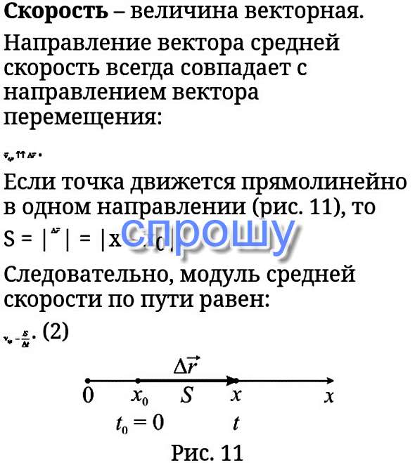 Что называется скоростью движения? Что она означает? Напишите формулу скорости.