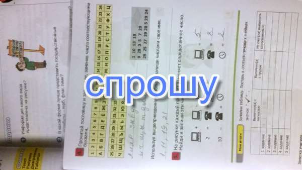 Компьютер (5) 5+5=10 телефон (3) 2+3=5 часы (7) 10-3=7