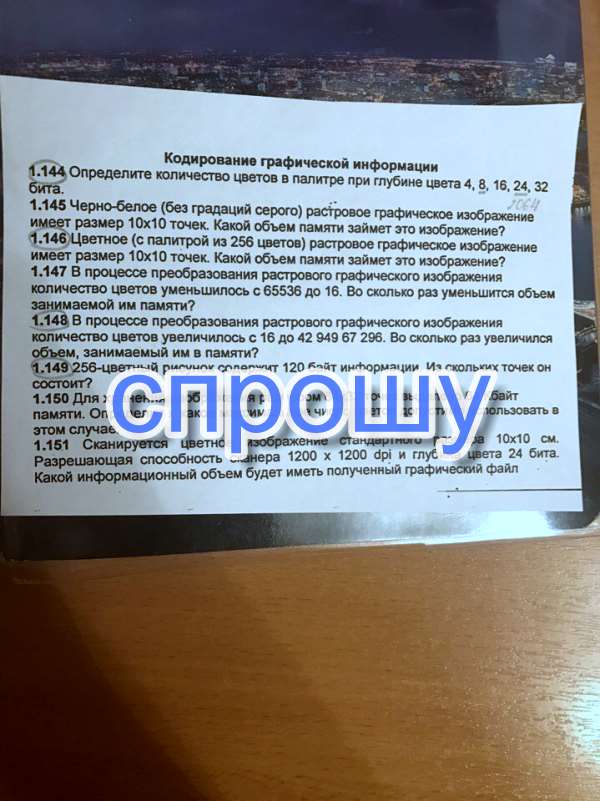 1.144 ответ:16, 256, 65536, 16777216, 4294967296 цветов.