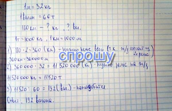 Сколько понадобится железнодорожных вагонов грузоподъёмностью 60 , чтобы перевезти все рельсы, необходимы для постройки одноколейной железной дороги длиной 180 км?