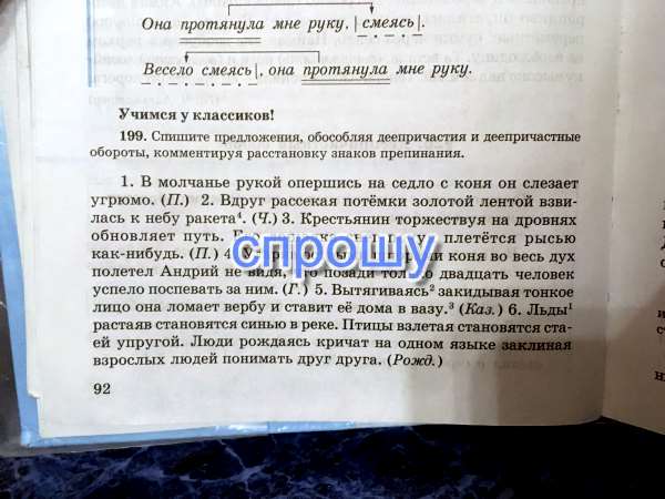 Упражнение 199. Фото ниже. Помогите прошу это срочно. Обособить деепричастия и деепричастные обороты, и написать знаки припенания.