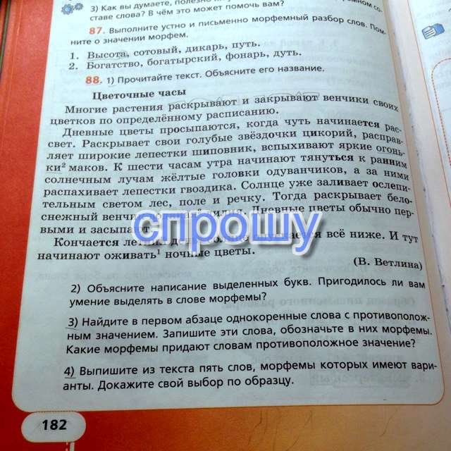 1)Прочитайте текст. Объясните его название. Цветочные часы. 2)Выпишите из текста 5 слов, морфемы которых имеют варианты