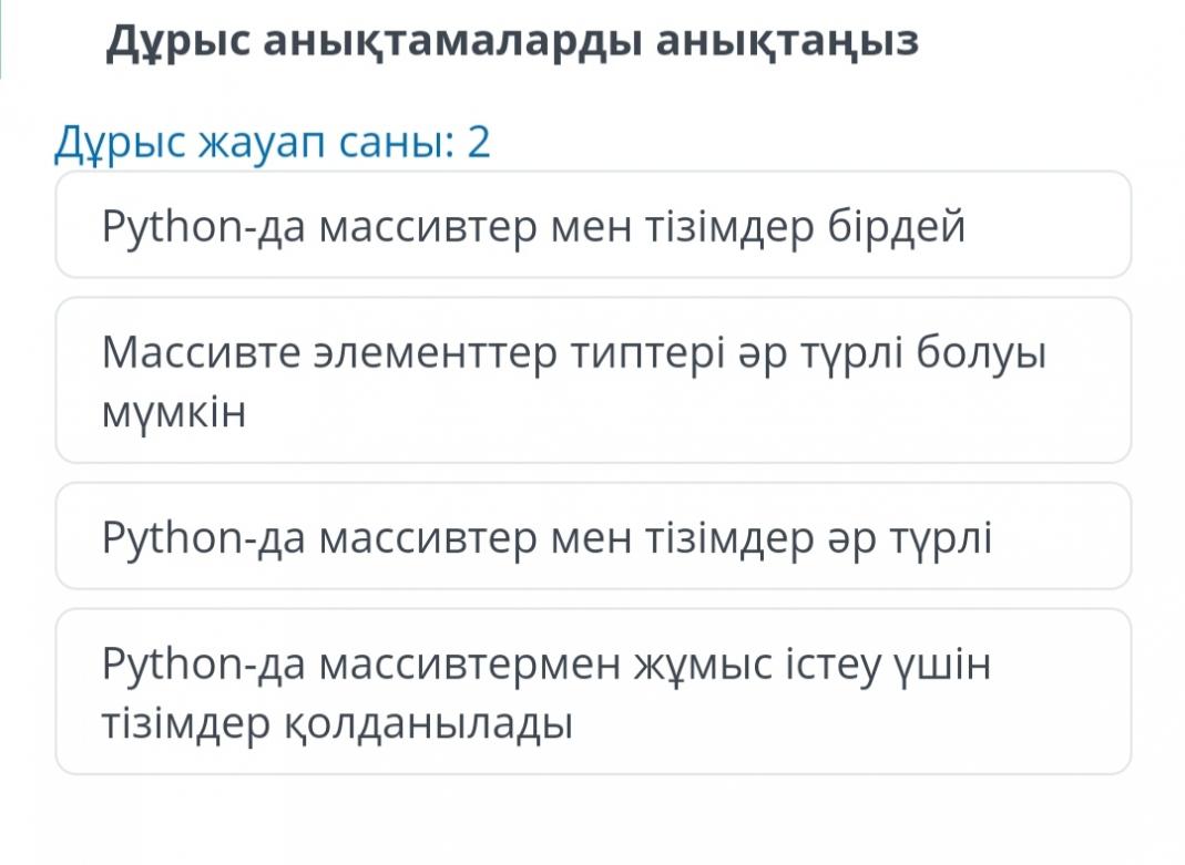 Python-да массивтермен жұмыс істеу үшін тізімдер қолданылады