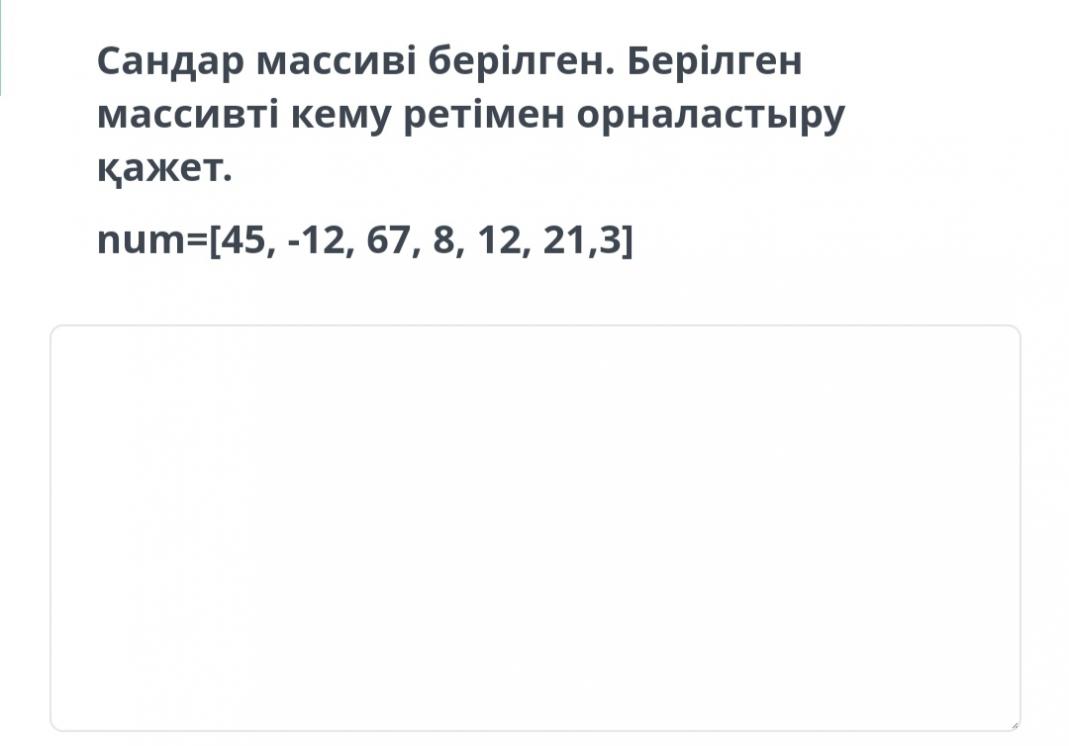 Сандар массиві берілген. Берілген массивті кему ретімен орналастыру қажет.