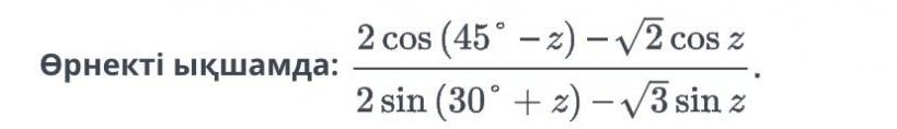 (2cos(45° - z) - √2cosz)/(2sin(30° + z) - √3sinz)