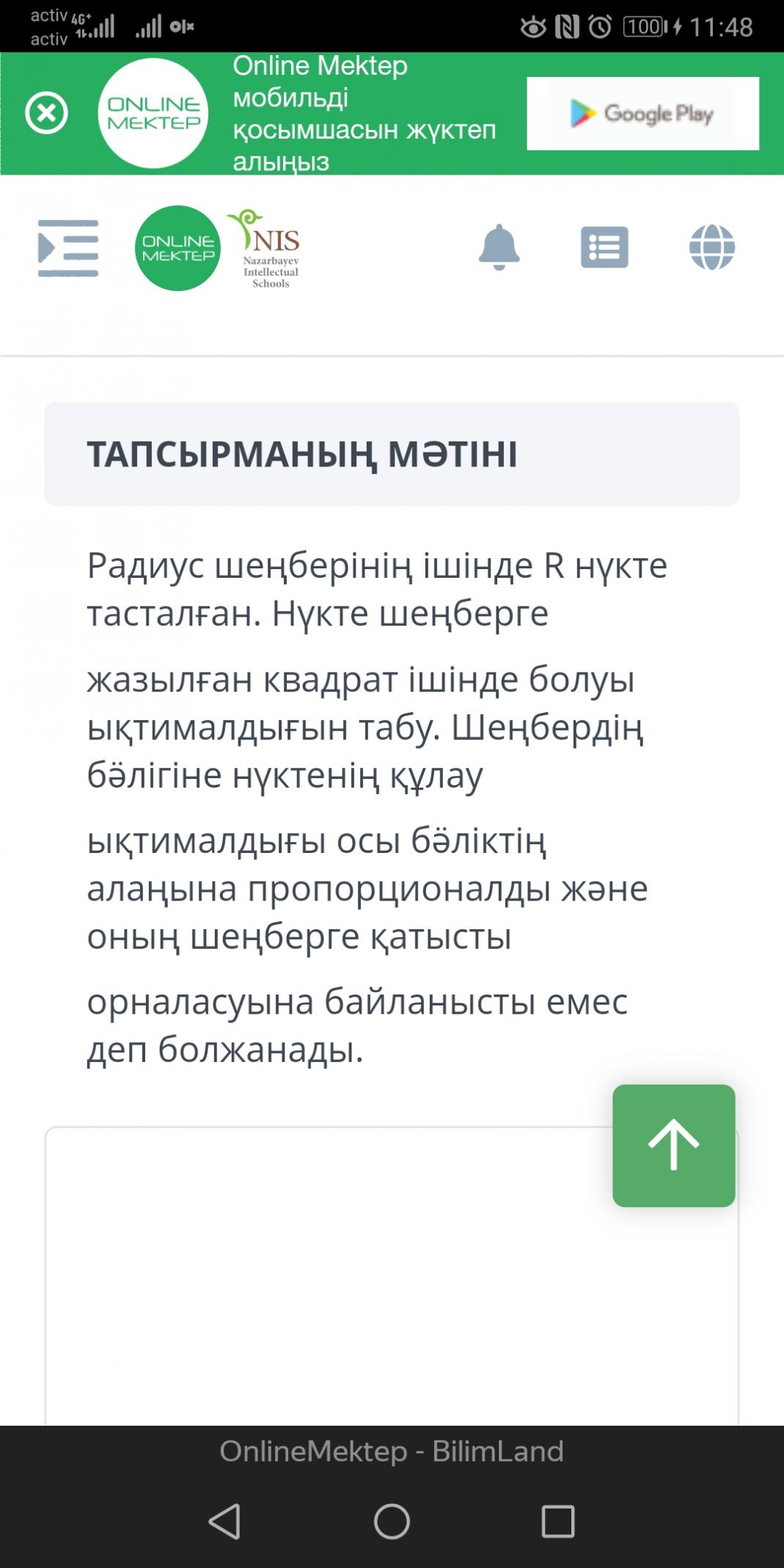 Радиус шеңберінің ішінде R нүкте тасталған. Нүкте шеңберге