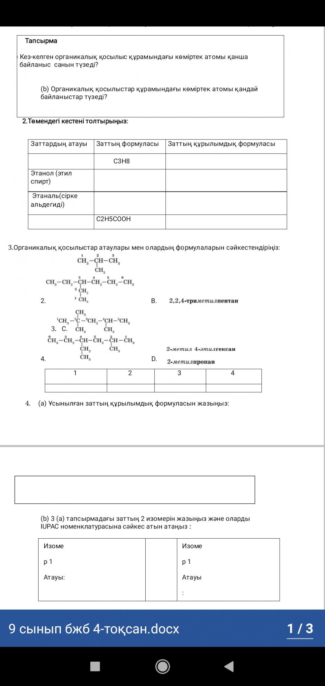 (b) 3 (а) тапсырмадағы заттың 2 изомерін жазыңыз және оларды IUPAC номенклатурасына сәйкес атын атаңыз