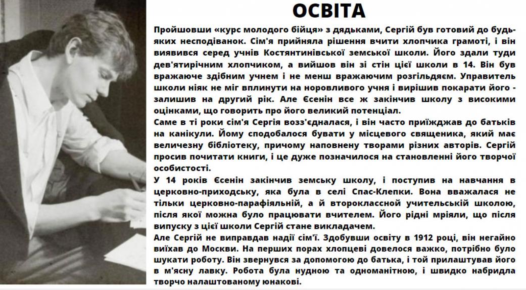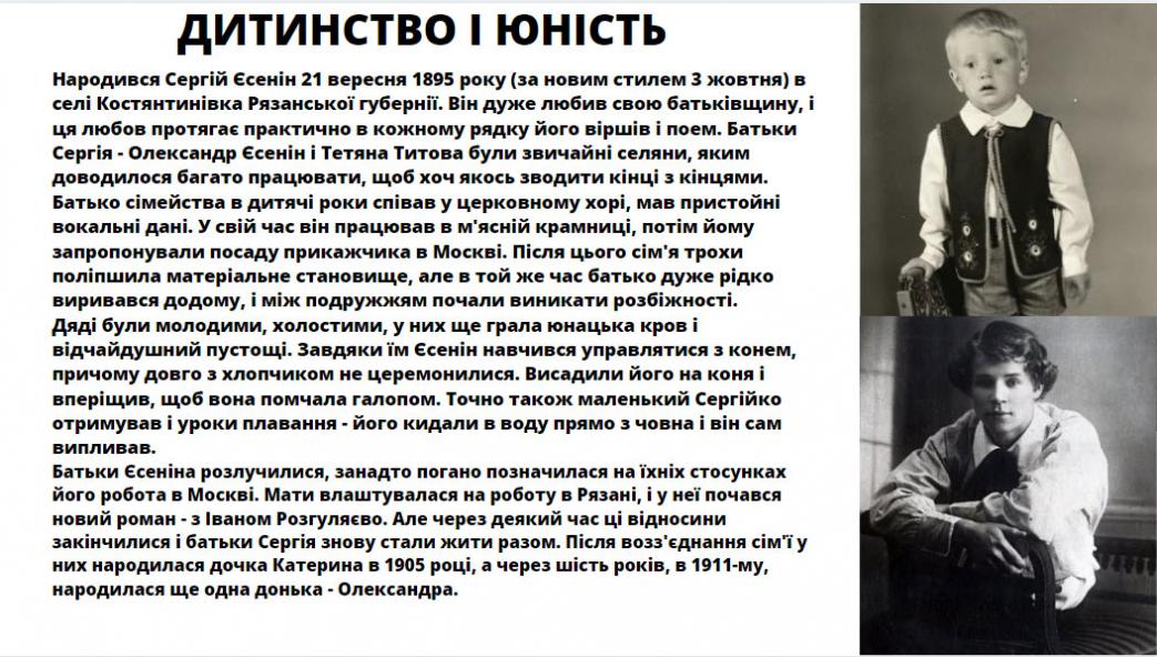 Допоможіть будь ласка зробити презентацію на тему Біографія Сергія Олександровича Єсеніна